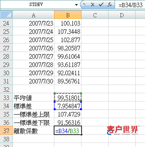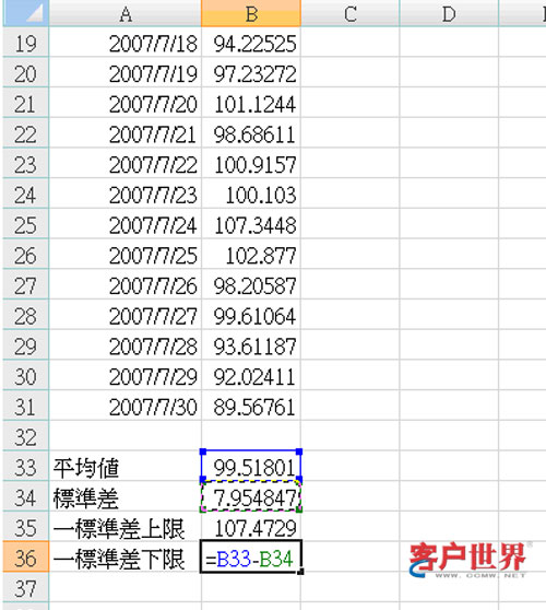 图说:B35是一个标准差上限,而B36是一个标准差下限