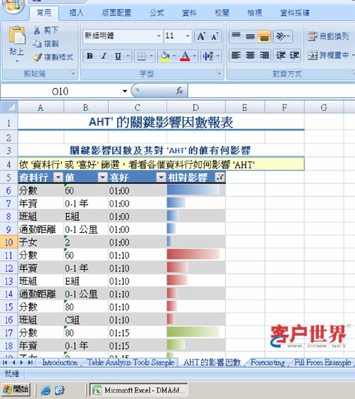 但笔者这篇文章,却想指出一个非常新的,又震撼人心的发展,就是Excel 2007版的新功能:“分析关键影响因子”。这功能可以找出某一个群体里面的关键特征,而这一功能,将对解决呼叫中心两极论的困境,发挥关键性的影响。原本呼叫中心很无力的一些现象,完全可以利用Excel找出答案。笔者相信Excel 2007这一功能,将对呼叫中心管理产生革命性的影响。