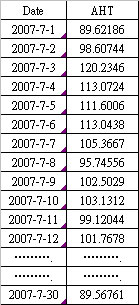 这是某呼叫中心7月1号到30号的平均处理时长,我们就试试看画一张频次表。
