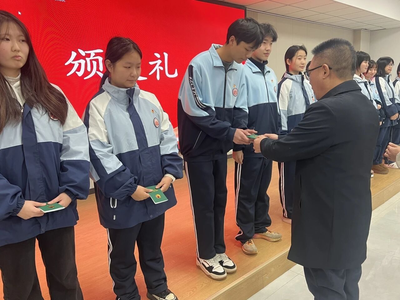 12月25日,正阳县赞华职业高中庄严举行“青春向党 技能报国”2025年新团员入团仪式。校长李保龙、政教处主任高弘琛、校团委书记王旭出席活动,共同见证24名优秀学子光荣加入中国共产主义青年团。