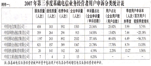 为加强社会监督,推进电信服务质量持续改善,根据《中华人民共和国电信条例》相关规定,现将2007年第三季度电信服务质量有关情况公布如下。