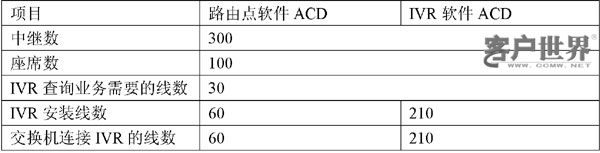 3、硬件成本差别很大。这在大型呼叫中心中表现尤为明显,如果用IVR软件ACD方式,IVR数量必须大于中继数-座席数。