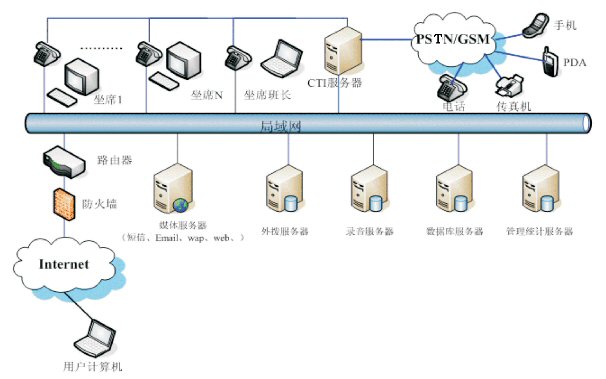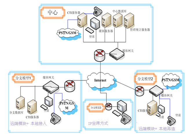 - 多种分布式、远端坐席实现模式,满足用户不同分支机构的业务和规模需要。