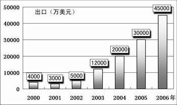 2006年大连软件和信息服务业出口45亿美元中,对日出口超过80%。不过日本的发包量只占全球外包市场的10%,而美国的发包量占全球市场份额的65%,其中60%发往印度。