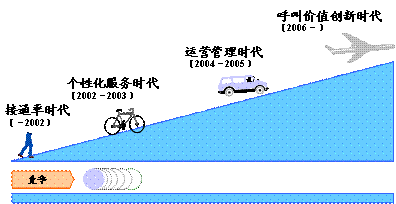 对于大规模的服务型呼叫中心,从呼叫中心的运营目标来看经历了以下四个阶段(图1):