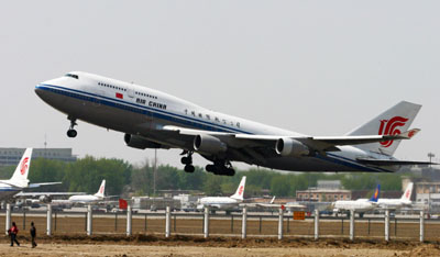 2006年4月20日,北京首都机场的国航飞机。马儒壮摄