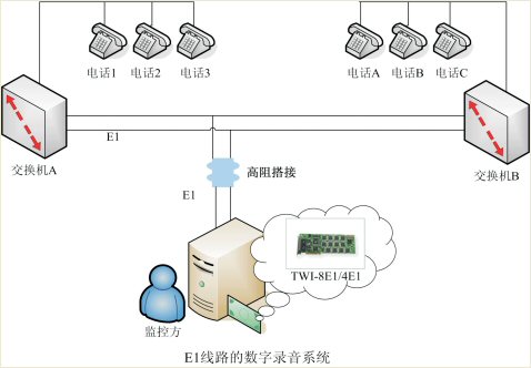 采用对E1线路的录音方案时候,如果中断数量比较多,可以适当增加DXC数字交叉设备,减少E1中断数量,从而达。
