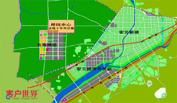 北京呼叫中心产业基地于2007年8月经北京市政府批准成立,该基地位于密云新城西部密云经济开发区内,距密云县城2.5公里,距京承高速路4.5公里,规划占地面积3平方公里。