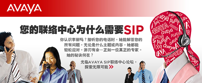 Avaya公司诚邀您参加分别于2008年1月9日在上海, 1月11日在北京举行的“Avaya SIP联络中心论坛”, 与我们共同探讨SIP网络如何帮助您的客户以最为方便适宜的方式联系您的企业。