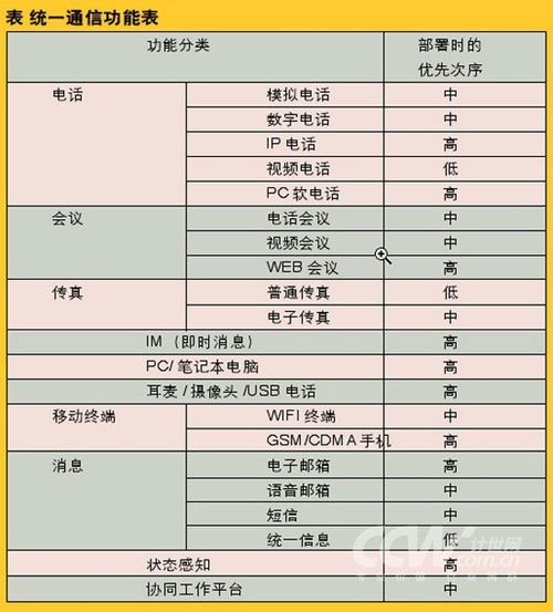 具体而言,企业用户在部署统一通信解决方案时,通常采用全部更新或者在原有设备基础上进行升级两种方式。具体涉及到的产品包括:统一通信平台产品、相关的IP PBX、VOIP网关、路由器等电信和网络设备、用来承载UC系统的服务器、相关操作系统、数据库、中间件等支撑软件、终端产品包括传统电话、IP电话、移动电话、UC定制电话、PC、耳麦、摄像头、安全软硬件产品、存储设备、视频会议系统等,以及为部署UC而支付的相关咨询、实施和售后服务费用等。