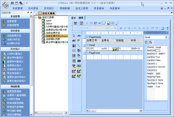 CMS是有效的对呼叫中心进行监视和管理的系统。它可以实时监控整个呼叫中心的当前数据,按照座席、技能组、中继线、队列、路由进行监视,查看座席服务状态及接通率各种指标,通过各项实时记录和历史记录向用户提供多种综合分析报告和统计报告。其所生成的上百张报表,可以协助企业有效管理资源,检查成本,预测改善现有运作的潜在需求。并提供图表显示,生成Excel文档进行再编辑,或者通过标准的报表形式进行编辑。支持自定义报表。