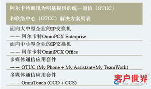 阿尔卡特朗讯为明基提供的统一通信(OTUC)和联络中心(OTCC)解决方案列表