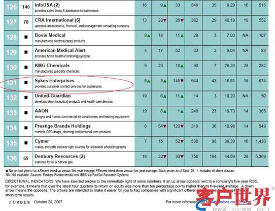 赛科斯(纳斯达克股市代码: SYKE)是全球五大客户关系管理与呼叫中心外包服务商, 为众多《财富》500强企业提供一整套全球范围内的技术支持服务,曾被《投资导报》誉为"技术支持性外包领域中的劳斯莱斯"。