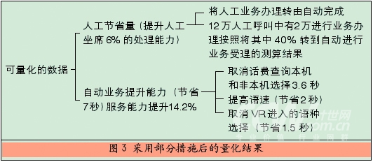 从图3的分析中可以看出,如果人工服务采取1项措施,自动业务采取3项措施,则可以得出如下的量化结果: