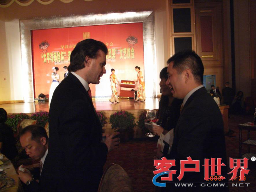 来自翔龙通讯公司的区域销售总监苏同骏先生代表翔龙公司和阿尔卡特朗讯公司进行了精彩的发言并作为抽奖嘉宾,表达了对于此次会议成功举行的美好祝愿!翔龙作为供应商会员今后将立足协会平台,为广大的会员提供专业的酒店通信服务。晚宴期间,翔龙公司代表和阿朗公司酒店行业销售总监龚总与浩华管理顾问公司董事Mr.Nigel?Summer、星河丽思卡尔顿酒店总经理Mr.Iwan?Dietschi、深圳市饭店业协会会长、中航酒店管理有限公司总经理张振山先生等就深圳饭店业的发展以及酒店通信系统改造和选择,提升酒店行业管理水平进行了友好而亲切的交流。