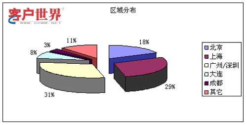 截至到2006年底,中国呼叫中心产业拥有呼叫中心座席总数24.8万个,市场总规模达到308.9亿元人民币,比2005年底分别增长15%和21%。从地区来看,目前中国的呼叫中心已经遍布全国,不仅在早期集中发展起来的上海、北京、广州、大连、青岛、天津,其它的省市(尤其包括西安、成都等内地城市)呼叫中心都同步发展;以大连、成都、西安为代表的“中国服务外包基地城市”在呼叫中心业务发展上异军突起,成长非常迅速,进而带动了西部省份的发展。总体看,中国呼叫中心的区域发展格局更为均衡合理(见图一)。