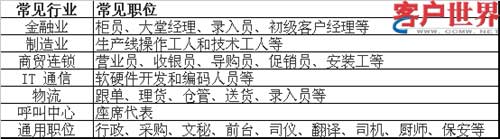 表二 常见人力资源派遣服务行业和职位列表