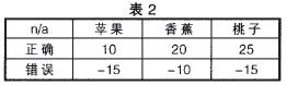但是当误差不同时具有最高准确率的模型并不是最合适的。例如,如果农场依据正确值/错误值一吨苹果可以赚$10/-15,一吨香蕉赚$20/-10和一吨桃子赚$25/-15,详见表2。