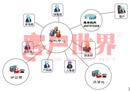 呼叫中心可以与企业的财务系统、OA系统、ERP系统、CRM系统等进行整合,帮助企业轻松实现整个业务流程的管理、企业内外沟通过程的管理。每个流程、每个节点都是可以被量化,可以被审查和纠正的。呼叫中心部门已经不再局限于对客户的服务提供,已经完全成长为一个提升企业效率和运营能力的服务管理部门。通过下表我们看到呼叫中心在组织中的职能架构发生变化,已经完全成为与客户沟通的最重要的部门之一。