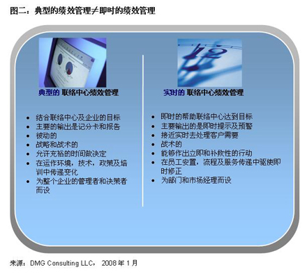 联络中心绩效管理有2种类型:典型的和实时的。虽然他们有很大的不同,他们也会有互补的功能,并且每个都向不同的管理部分提供可控的数据。见图二。