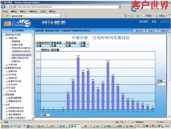 中继分析之日每时呼叫次数对比—Hi-link3.0报表应用分析