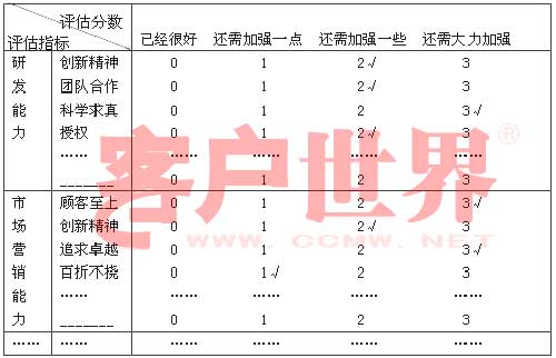正确的战略可以让企业获得竞争优势,但这种竞争优势有短期和长期之别。要想企业获得长期竞争优势,实现基业长青,必须重视企业核心竞争力的培养。除去从地理位置、自然资源等获得核心竞争力外,其他大部分核心竞争力的获得都需要相应的企业文化的支撑。如3M公司的核心竞争力就是产品创新能力,创新文化是对该核心竞争力的支撑;西南航空公司的核心竞争力是其服务能力,其充满团队合作、灵活性、授权、关爱员工和顾客以及幽默等特色的企业文化是对其独特服务能力的支撑。因此,我们认为,有必要从是否支持核心竞争力的角度对企业文化进行评估。具体步骤如下: