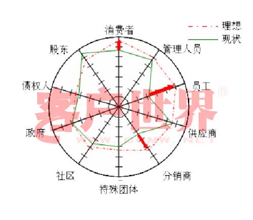 图2 ××企业面向利益相关者价值观理想与现状对比图