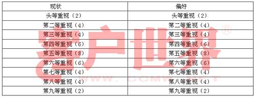 ※请评价您所在企业对以下特质价值观的重视程度,其中在“现状”栏依次填上您认为的企业现在头等重视的2个特质价值观(数字代号)、第二等重视的4个特质价值观,依此类推;在“偏好”栏填上您认为的企业应该头等重视的2个特质价值观、第二等重视的4个特质价值观,依此类推。