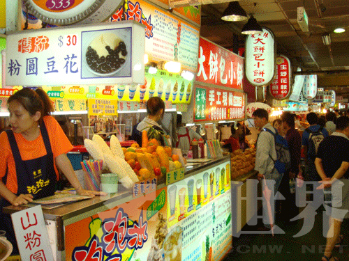吃饱喝足后一定要留些空间品尝水果和甜品,台北的新鲜芒果和芭乐汁是最好的,芭乐汁从番石榴果实榨出,新鲜的酸甜味既开胃又养颜,芒果冰是一般甜品店里的招牌品种,老板专门定最好的冰,每天新鲜地运来,然后用特制的机器制作,甜品店的店招也很有特色,有的用大红灯笼挂在街边,上面印着“水果豆花”,“红豆芋圆”之类赏心悦目的吃食,叫人实在忍不住停下脚步,饕餮一番。