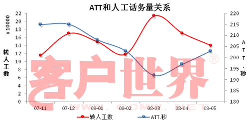 请先看月度ATT和人工话务量的关联图:(图2)