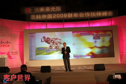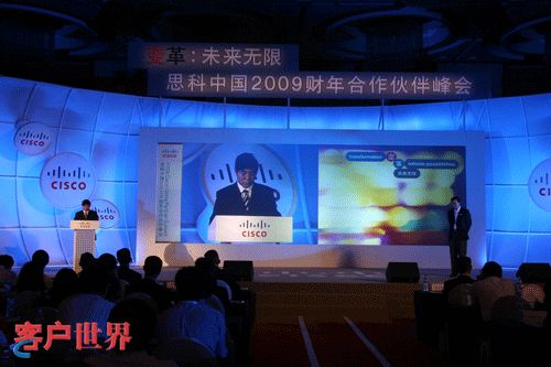 2008年8月1日至3日,主题为“变革,未来无限”的思科中国2009财年合作伙伴高峰会议在云南昆明成功举行。在此次峰会上,结合“变革”这一战略思想,思科与500多名合作伙伴和媒体分享了2009财年思科中国策略,并将思科全球最新的渠道政策进一步落地中国,从而帮助中国合作伙伴紧握时代脉搏,引领市场变革趋势,共创具有Web2.0时代特征的协作型渠道。思科中国董事长史瑞夫先生(Jim Sherriff)、思科中国总裁林正刚先生等思科高层以及云南省领导、来自全国的500多位思科合作伙伴代表参与了本次盛会。