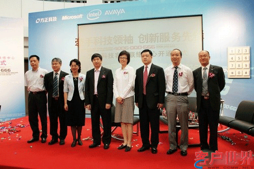 [客户世界消息]2008年8月28日,苏州。今天,方正科技集团在苏州工业园举行了主题为“牵手科技领袖 创新服务先锋”的新闻发布会,正式为其重金打造的全新客户联络中心揭幕。方正集团高级副总裁、方正科技董事长方中华、副总裁孙国富、助理总裁朱兆庆、苏州工业园区管委会副主任孙燕燕、工信部呼叫中心标准指导委员会常务副主席赵溪、苏州工业园区胜浦招商中心主任董蕾、副主任王宝明、经济贸易发展局三产管理处处长陈霞以及英特尔、微软、Avaya等公司高层领导悉数出席。