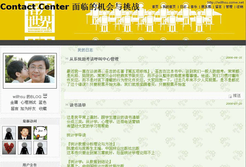 客户世界杂志作为一家纸质媒体,在官方网站上也开通了博客专版,中国呼叫中心行业的众多专家、学者和管理高层都在其栏目上开通了博客,并且很多人的点击率从开通之日起,便一直持续飘红。如今,很多博主的点击率都已经过万。为了让更多的网友了解博主的生活,记者专门采访了一些博主,让我们走进的博主们的生活——