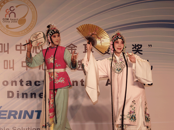 呼叫中心是一个声音背后传递关怀的事业,数十万座席代表佩戴专业耳唛为客户提供服务,他们被全社会亲切地称为“耳唛天使”。本届颁奖典礼最大的亮点是通过行业媒体《客户世界》的“海选”,来自一线的座席代表成为“2008(北京)亚太呼叫中心大会”的形象代表,并在颁奖典礼现场以自己独特鲜明的行业特色为盛典开奖。来自中央戏剧学院的顾卫英副教授领衔以一折中国昆曲《牡丹亭》将晚会推向高潮。