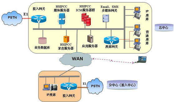 支持IVR接入、人工座席的分布式部署,非常适合构建接入分布、座席分布、集中管理的分布式呼叫中心系统;