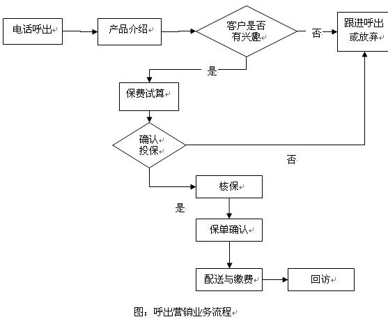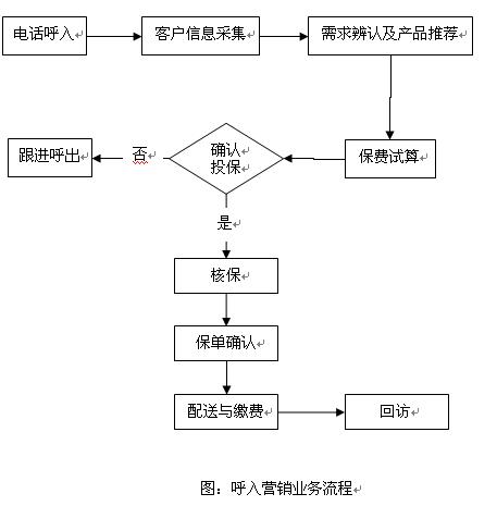 保险电销业务主体可以分为呼入营销和呼出营销两大类。两种营销方式的业务处理流程有一定的差别,根据赛迪呼叫的保险电销经验,这两种营销方式的主体流程可简单概括如下: