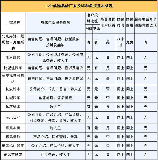 面对以上这些问题,汽车厂家也不断做出调整,把关注和解决用户投诉作为工作的重点,以便改善服务质量、提高用户满意度。为了让消费者能够更全面的了解各汽车厂商在售后方面的服务态度以及投诉的基本解决情况,记者把对36个汽车品牌的投诉调查作为后续报道的一部分呈现给大家。