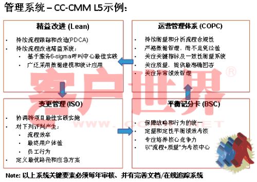 其实我是借鉴了能力成熟度的五级,它打造的管理系统从整个的运营体系的建立到如何建立一个改进,到呼叫中心的运营和战略联系起来完全是一个闭合的环节。在这个过程当中每年都是在不断的改进,比如说中华电信平衡记分卡,每两年制定一个战略图,以符合企业的战略规划。真正的成熟度五级管理系统应该是可以自己引进,可以和战略匹配,而且反映的你的呼叫中心的变化。