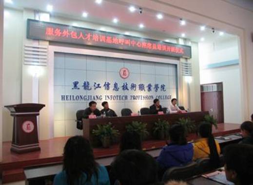 2008年11月20日上午,省服务外包人才培训基地呼叫中心坐席员培训班开班仪式在黑龙江信息技术职业学院举行,学院党委书记程万君、高智达通讯有限公司华北区经理杨茂林等领导参加了开班仪式。今年10月省服务外包职教集团成立时,黑龙江信息技术职业学院成为省服务外包人才培训基地,此次培训是信息学院组织的首次服务外包人才专项培训。