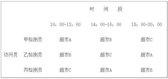 比如在某连锁超市的神秘顾客检查中,在一个月时间内对其所属三家连锁超市进行检测,使用三名不同的检测员,我们可以使用以下的设计方法: