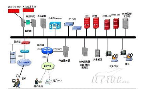 为了提高在银行业的竞争优势,更好为客户服务,进一步挽留老客户、挖掘新客户,北京农业银行的领导层选择新晨集团为其集成开发了一个“起点高、技术先进、功能齐全”的全国金融界首例的IPCC(IP联络中心)客户服务中心系统(如图1所示)