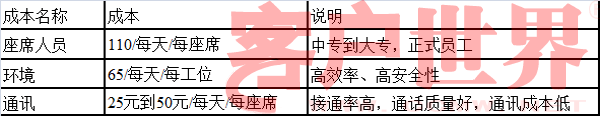 2、说明:座席学历从中专到大专,是正式员工,享受国家规定的各种保险和福利,此成本中涵盖了座席的管理和培训成本。