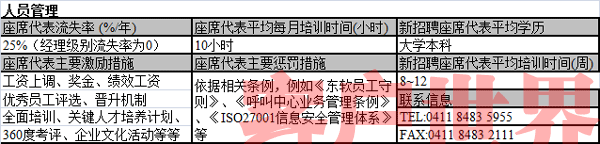 1、优秀的人力资源及培养措施;本项目配备了运营和技术两方面的专家资源,COPC的运营标准,CCIE的专家力量,为项目提供了有力的支撑。以优秀留学生和国内本科生为基础,打造运营核心团队,增强外语对应能力。另外,还在3年后的今天,为本项目量身定制了“上线评估制度”、“末位淘汰制度”和“骨干员工培养制度”等。