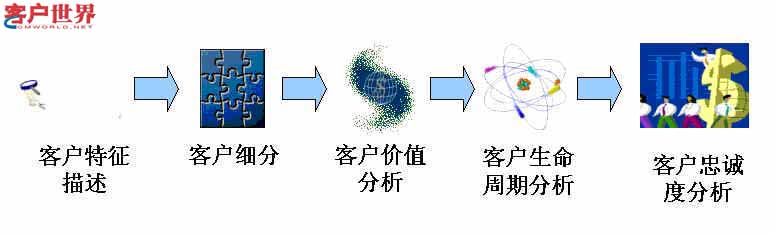 CRM强调的是一个对客户完整了解的过程,在这个过程中,贯穿着以客户为中心的主线,而这也是企业运营流程所应该围绕的中心。整个过程以客户细分为基础,基于客户细分的不同通过差异化的影响渠道提供差异化产品和服务。当企业发展到一定规模,业务开始跨产品、跨区域、跨目标客户群进行操作的时候客户细分就越显得重要。如果一个企业的CRM项目没有进行客户细分,而仅仅是部署CRM系统,就如同空中楼阁水中花月。我们先来看一下CRM的完整过程: