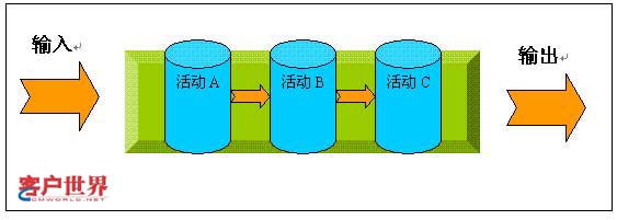 我们有时会看到同样的电话销售项目在不同的公司运营绩效有着非常大的差距,尽管产品是一样的,价格也是相同的。为什么会发生这种情况呢?当我们坐下来静静的反思时,我们发现原来根本的不同在于运作流程,不同的项目管理流程造成了这样的结果!在管理学上对流程的定义是“流程是将输入转换为输出的一组彼此相关的资源和活动”(图一),流程管理是穿越整个企业的,它就像一个链条把企业一个各部门,一个个环节串在一起,以形成高效、完善的工作流。在相同输入的情况下,由于流程设计的不同,必然导致输出结果的不同。这样我们就不难明白为什么同样的产品,相同的价格就会在销售成绩上有着如此之大的差别了!