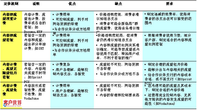 从国外运营商的经验来看,内容计费将成为3G业务计费的主要定价基础,主要原因包括 内容计费更能够体验内容的价值,符合用户的需求;内容计费更易理解,便于用户控制成本 。