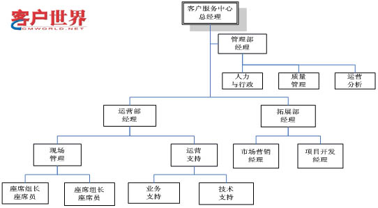 在客户服务中心的管理中,还需要引入项目管理的理论。任何类型的客户服务中心,当他接到一项工作或任务时,我们都需要把它当成一个项目来管理。而在项目管理中,我个人认为:应该以运营分析/监管部门为主,其主要人员作为项目的总负责人。销售/拓展部门虽然是负责引入项目/开发项目的,但是我认为他在前期的工作比较多,偏重于项目的沟通与协调,但是在项目合作开始后,其工作就比较简单了。项目的设计、流程的监管与运行等都需要有监管部门负责。因此,我认为:销售/拓展是负责“what to do”,监管部门负责“how to do”,运营部门负责“to do it”。所以,项目中有监管部门负责人或运营分析师担任项目管理较为合理。