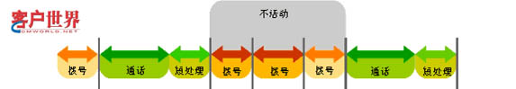 下图显示的是一个涉及呼出呼叫的时段,描述了服务代表的有效时段和无效时段。