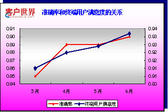 从图中不难看出,随着内部监控准确率的提升,终端用户满意度调查的结果也在提升,尽管两者的幅度会略有差异,但整体看趋势是吻合的,从而说明内部监控的结果较真实地反映了咨询质量。如果此图的折线发生变化,准确率在提升的同时,终端用户满意度调查的结果在下降,管理者就要通过数据分析问题出在什么方面,业务关注的重点是否是用户的需求了。