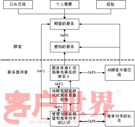 差距分析模型,简称GAP模型是美国Valarie.A.zeithamal,A Parasuramant和Leonard L.Berry等人在80年代研制的,并曾以“提供质量服务、平衡顾客感受和期望”为名发表。该模型专门用来分析服务质量问题的根源,该模型有助于管理人员理解如何改进服务质量。